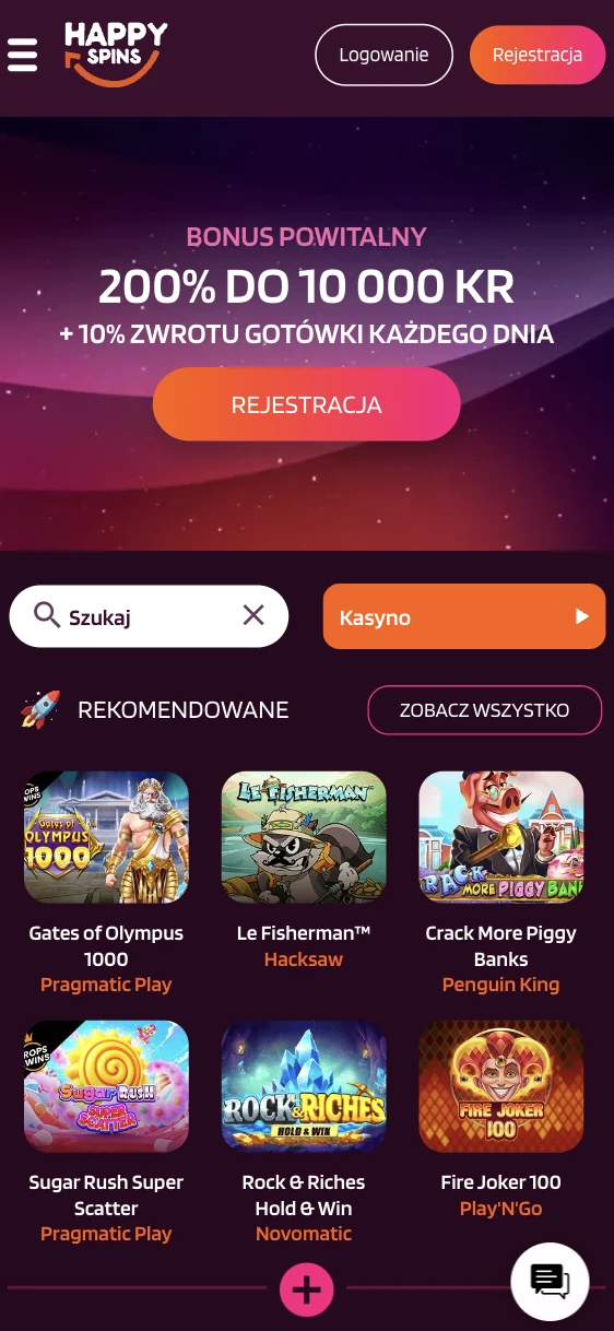 Obsługujemy graczy w języku polskim i innych wspieranych językach, a także wspieramy PLN obok EUR, USD, CAD, NOK, NZD, CHF, CZK i AUD. Jeśli dopiero zaczynasz na naszej platformie, rozpocznij od gry demo, a potem wpłacaj w granicach swojego komfortu. Gdy będziesz gotowy na grę za prawdziwe pieniądze, oferty bonus HappySpins oraz cashback możesz zarządzać bezpośrednio w sekcji promocji.